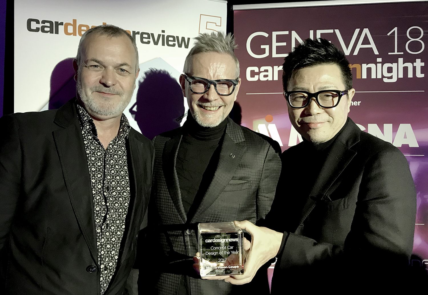 Ganz ehrlich? In aller Bescheidenheit: Wir hatten das richtige Gefühl. Das MAZDA VISION COUPE wurde zum Concept Car oft the Year gekürt. Nach dem Erfolg beim Festival Automobile International in Paris als ‚Most Beautiful Concept Car of the Year‘ ist das in kurzer Zeit die zweite Auszeichnung. Für das Modell und zugleich für das Design-Team von MAZDA unter der Leitung von Mr.Ikuo Maeda. Beim Salon in Genf nahm Kevin Rice, Design-Director, Mazda Motor Europe, die Ehrung im Rahmen der Car Design Night Geneva entgegen. Ausgerichtet von Car Design News, d e r internationalen Publikation für die Automobil-Design-Community. In der Essenz des Design-Konzepts, so Mr.Maeda, wird sich in der nächsten Fahrzeuggeneration wiederspiegeln, die 2019 auf den Markt kommen wird.