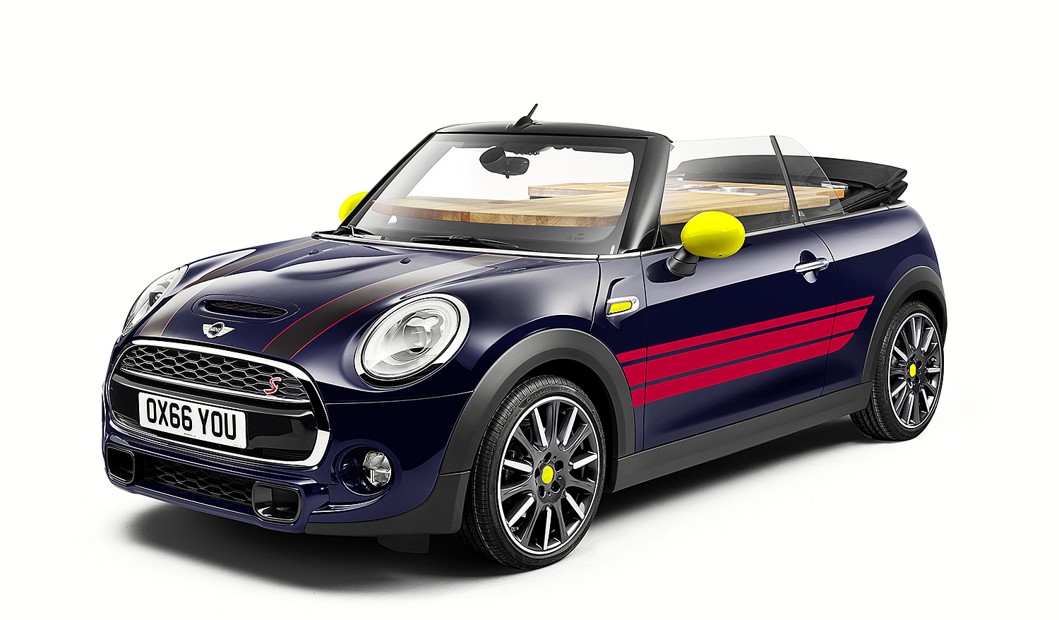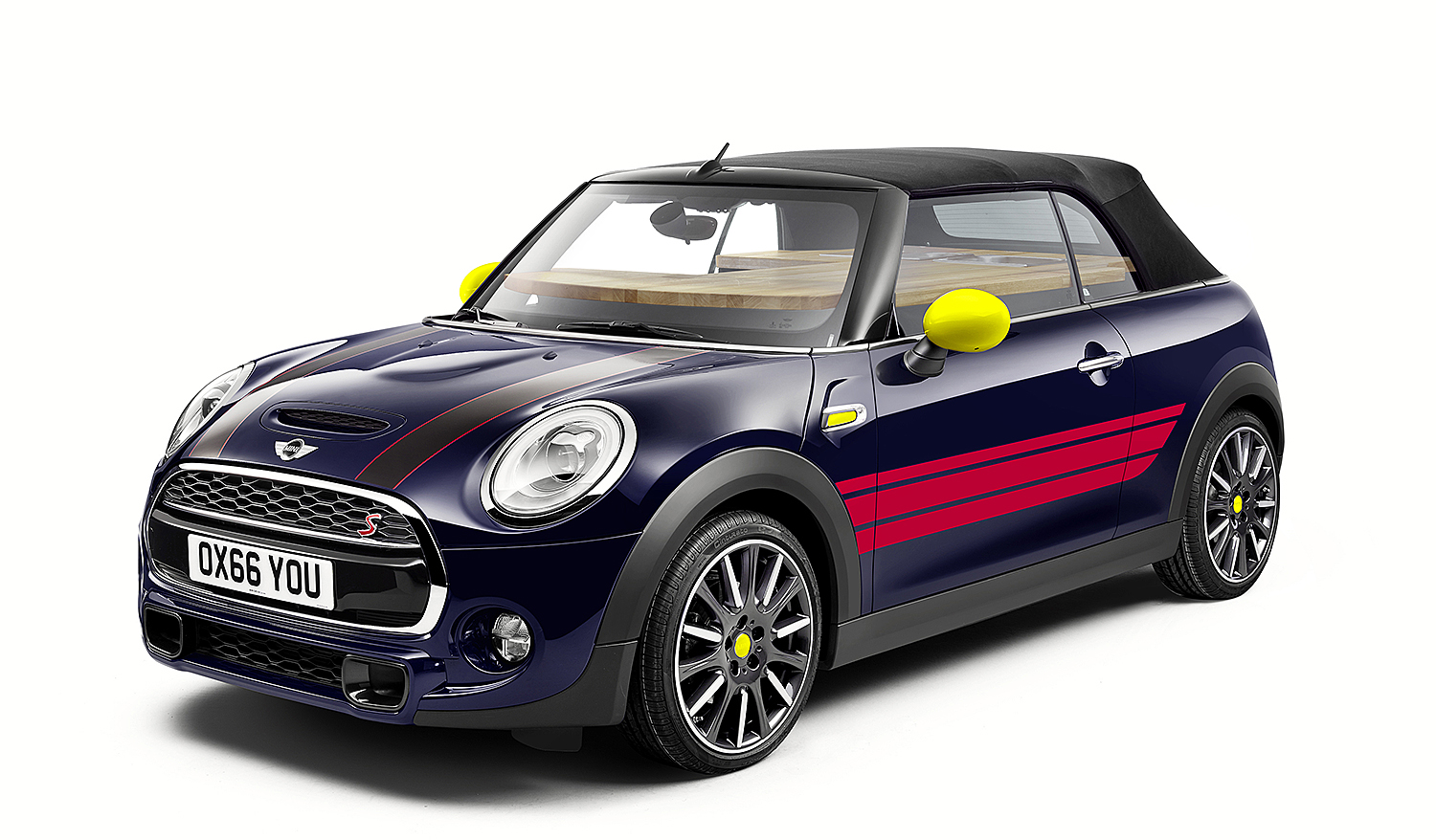 Auch mit montierter John Cooks Ausstattung – das Verdeck ist problemlos per Fernbedienung zu schiessen…