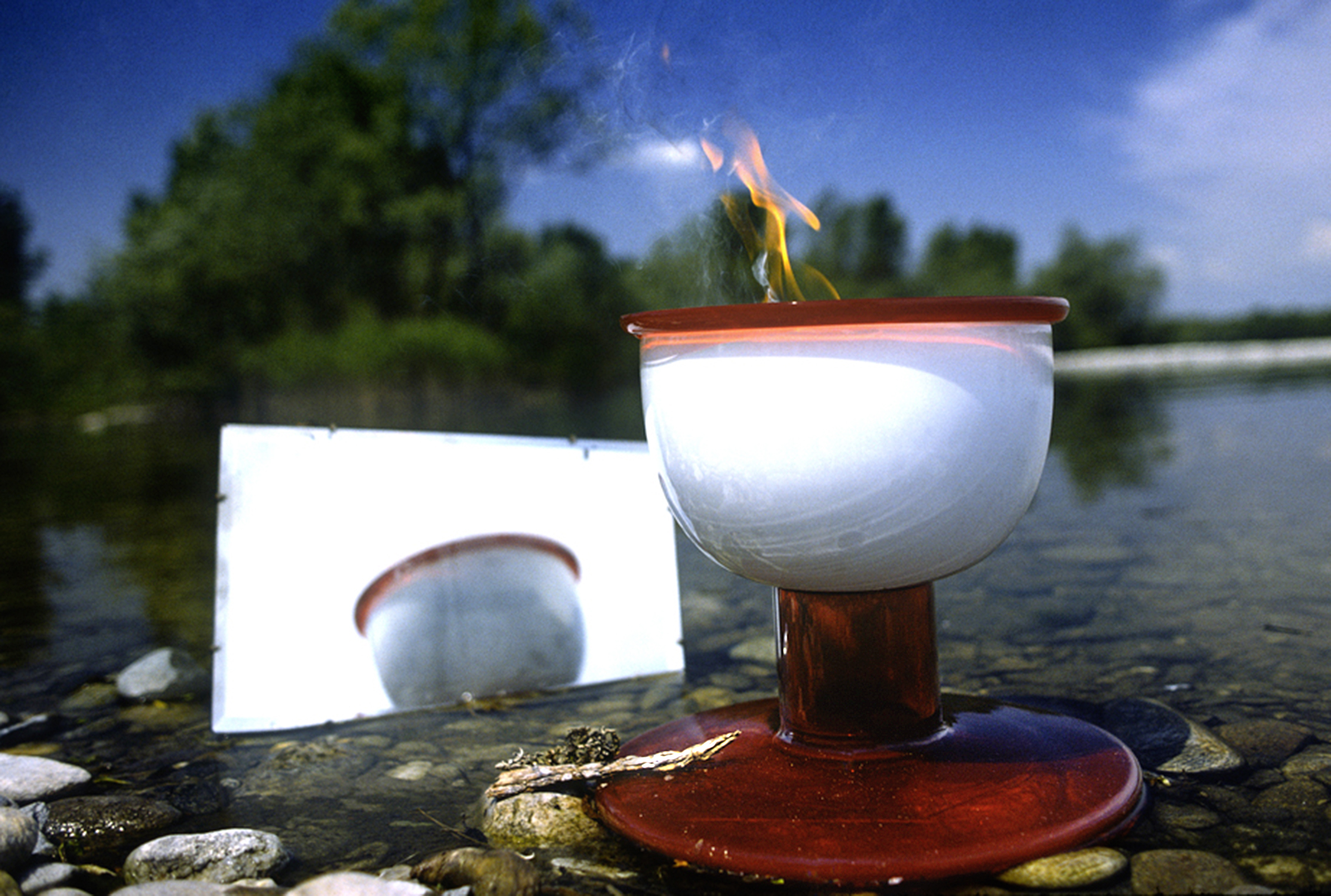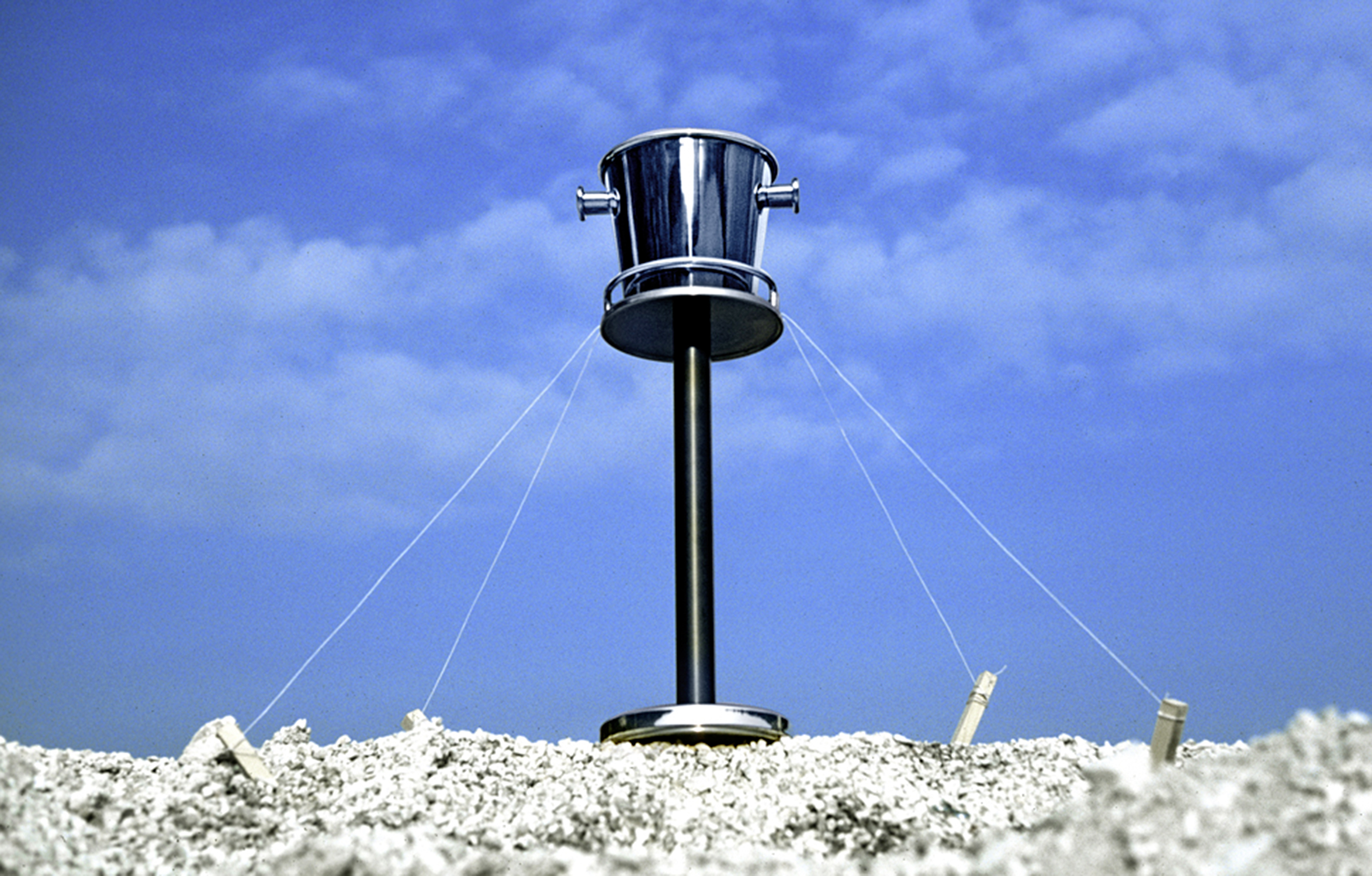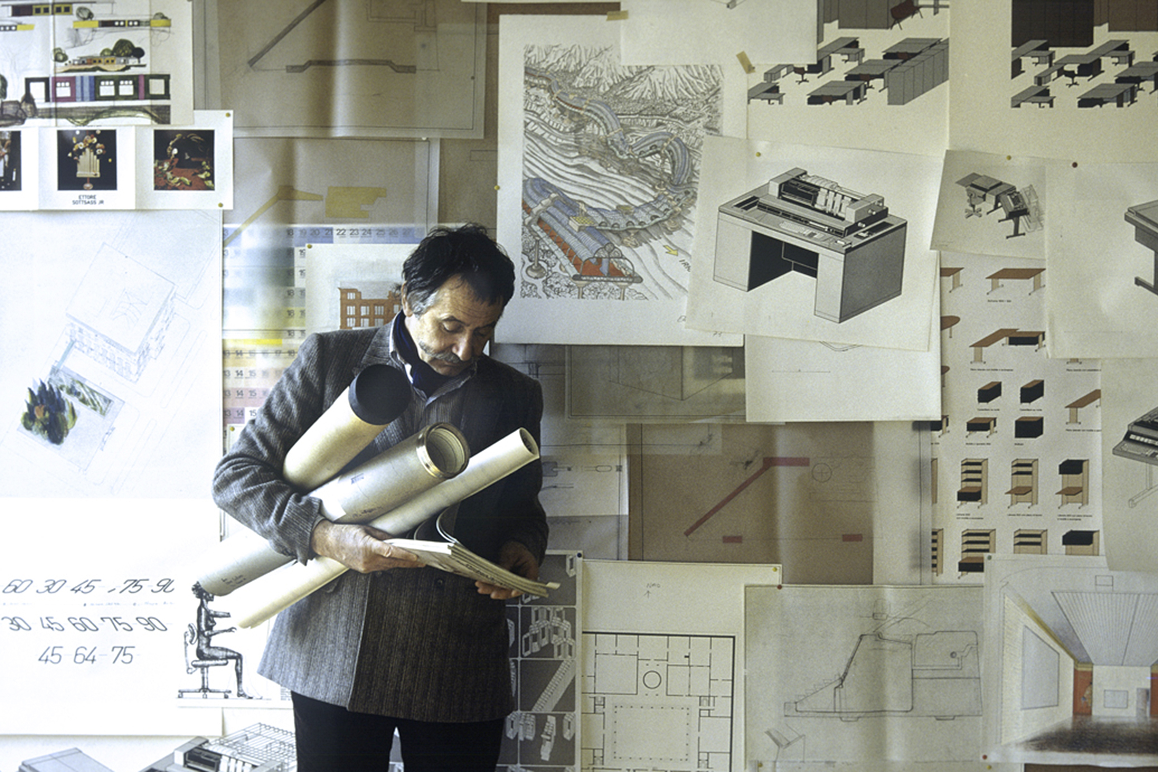 Es war meiner Erinnerung 1979, als ich Ettore Sottsass kennenlernte. In jener Zeit sind einige sehr ‚private’ Bilder entstanden. Gesehen haben sie bis heute sehr, sehr wenige. Nur eines, die Bandiera Gialla, war damals veröffentlicht worden. Es war Ettore’s Signal zum Aufruhr. Die Gelbe Pest-Flagge am Ticino sollte symbolisieren, daß Umbruch und Revolution die selbstgefällige Zufriedenheit des Design jener Zeit beenden sollten.
