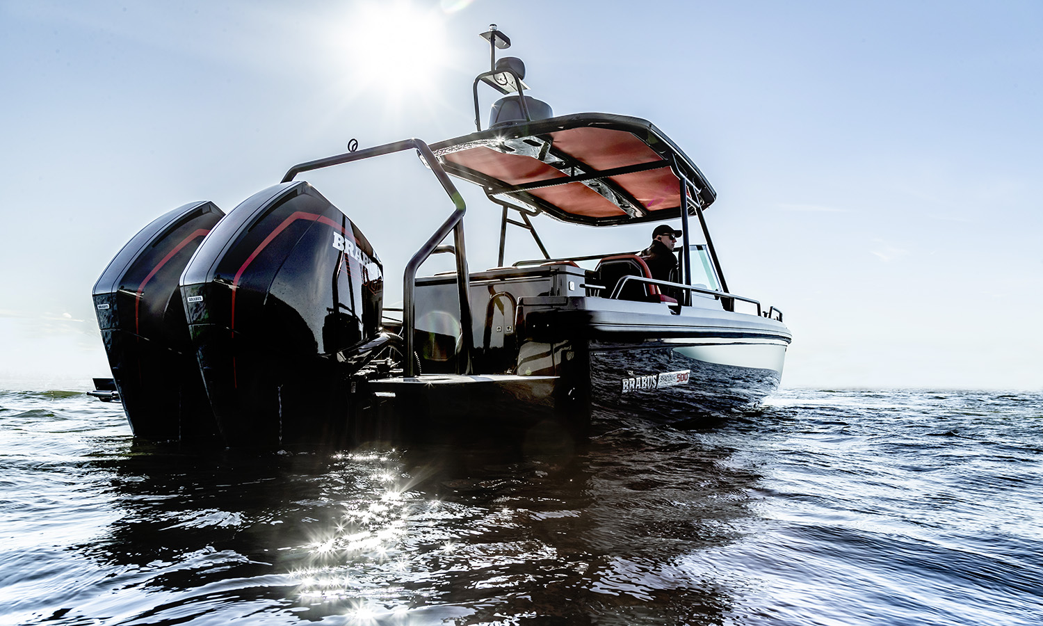 Also, wenn die Menschen in Finnland etwas machen, dann machen sie es konsequent. Das mag den Einen oder Anderen überraschen, der an sehr viele Birken, viele Seen, viel Platz und kalte Winter denkt. Aber Nokia, schon vergessen? Oder Design und Architektur von Alvar Aalto? Oder die Musik von Jean Sibelius…? Aktuelle Ergänzung zum Kennenlernen: Axopar Boote. Das Unternehmen wurde 2014 gegründet und ist mit seinen Kunststoff-Powerbooten seither kometenhaft aufgestiegen. In fünf Jahren hat die Firma rund 2200 Boote in Längen von 24, 28 und 37 Fuß verkauft und den Bootsmarkt kräftig umgekrempelt. Zur Zeit sind die Boote so begehrt, dass die Produktionskapazitäten überlastet sind. Konsequent setzt Axopar ein Konzept um, das eine andere Klientel im Bootsmarkt anspricht: Klar gezeichnete Formen, ausschließlich mit leistungsstarken Außenbordmotoren ausgestattet. Das dürfte Aufmerksamkeit bei Brabus hervorgerufen haben. Die Boote sind schnittig, tough, sportlich und schnell. Die passende Erweiterung des Aktionsradius und des Mobilitätsangebots ist Brabus Marine…