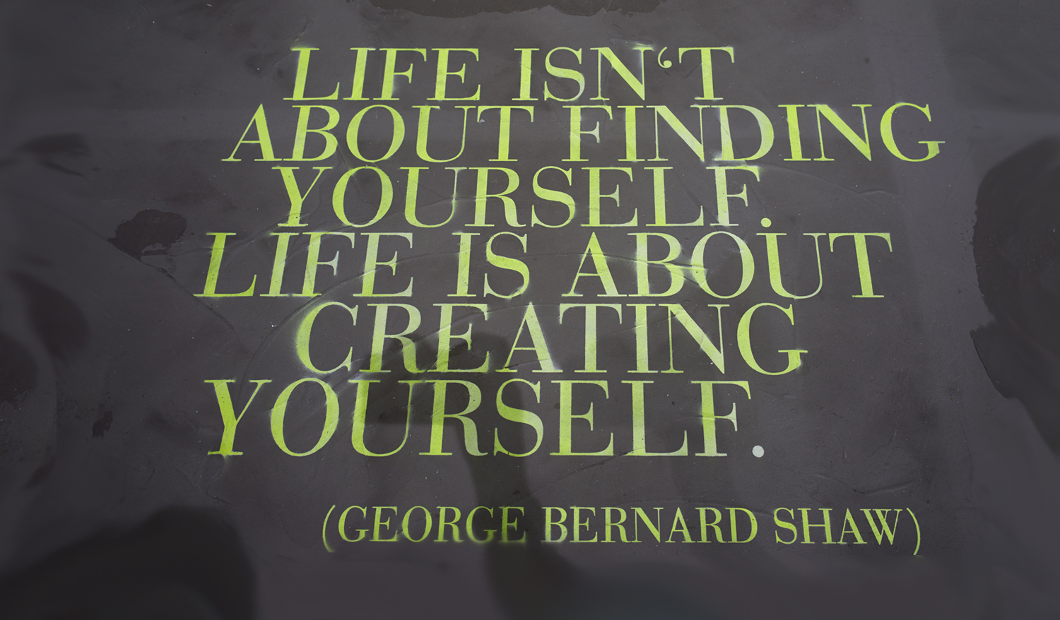 Muß man das mit Design verbinden? Nicht auf den ersten Blick. Legitim ist allerdings, den Begriff zu erweitern und daraus auch ein ‚Wie gestalte ich mein Leben’ zu machen. Bei der Frage hilft vielleicht ein Zitat von George Bernard Shaw: Life isn’t about finding yourself. Life is about creating yourself.