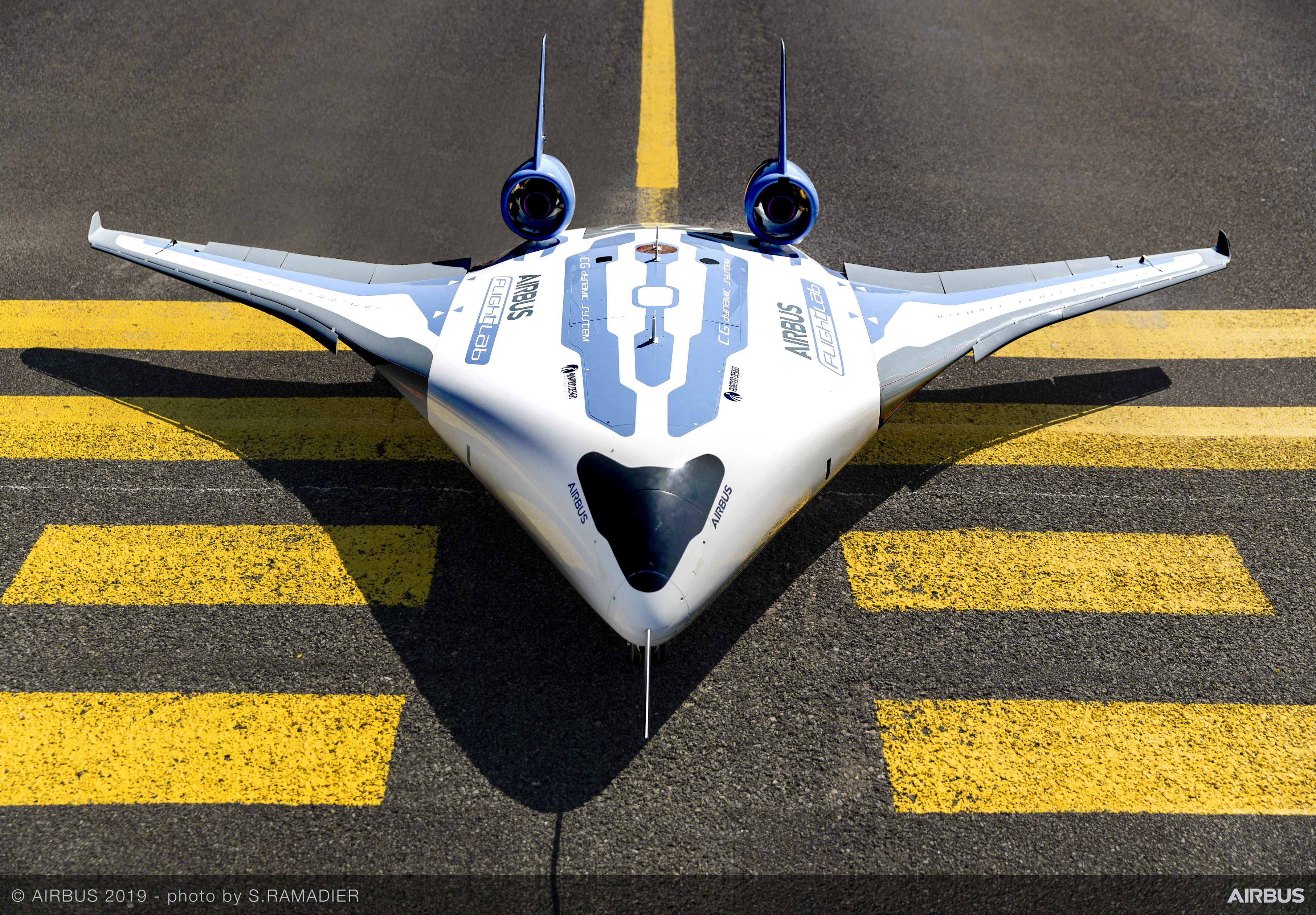 Seriös ausgedrückt: Blended-Wing-Body-Design. So könnte in Zukunft ein Verkehrsflugzeug aussehen. AIRBUS stellte das Konzept bei der Singapore Airshow vor. Das Modell hat den Namen MAVERIC – die ‚Langversion‘ der Typen/Projektbezeichnung: Model Aircraft for Validation and Experimentation of Robust Innovative Controls. Die Konstruktion soll im Vergleich zu den klassischen Flugzeug-Formen Treibstoff sparen. Rund zwanzig Prozent könnten es werden. Und es könnte möglich sein, mit dieser Form alternative Antriebe zu verbinden. Bisher war das Projekt nach seinem Start 2017 geheim. Seit Mitte 2019 werden mit einem ferngesteuerten Modell Testflüge in Toulouse durchgeführt. Für die Passagiere eines MAVERIC in unbestimmter Zukunft würde das Kabinen-Konzept Umgewöhnung verlangen. Bisher waren sie in der Mitte des Jet mit Blick durch die Fenster untergebracht.  Die Architektur von MAVERIC schränkt die Möglichkeit ein, Fenster anzubringen. Der Blick nach draußen müsste zum Beispiel mit Hilfe von Monitoren simuliert werden. Das könnte zu einem interessanten ‚Multi-Media‘-Flight werden…