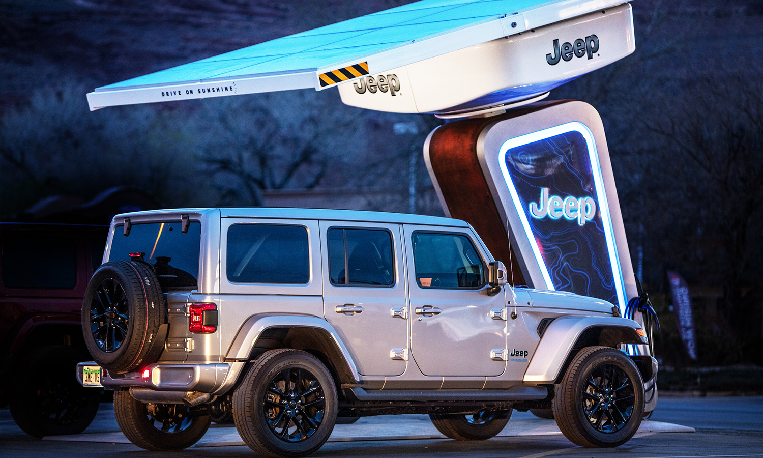 Steckdosen sind auf den klassischen Trails in den USA mit Sicherheit selten. Elektrisch angetriebene JEEP’s sollen dagegen häufiger auf den Offrod-Pisten unterwegs sein. Bei JEEP in den USA folgt dem klassischen ‚A‘ (wer A sagt, muss auch B sagen) konsequent des ‚E‘. Auf den wichtigsten Trails sollen Ladestationen aufgestellt werden. Den Strom liefert die Sonne.