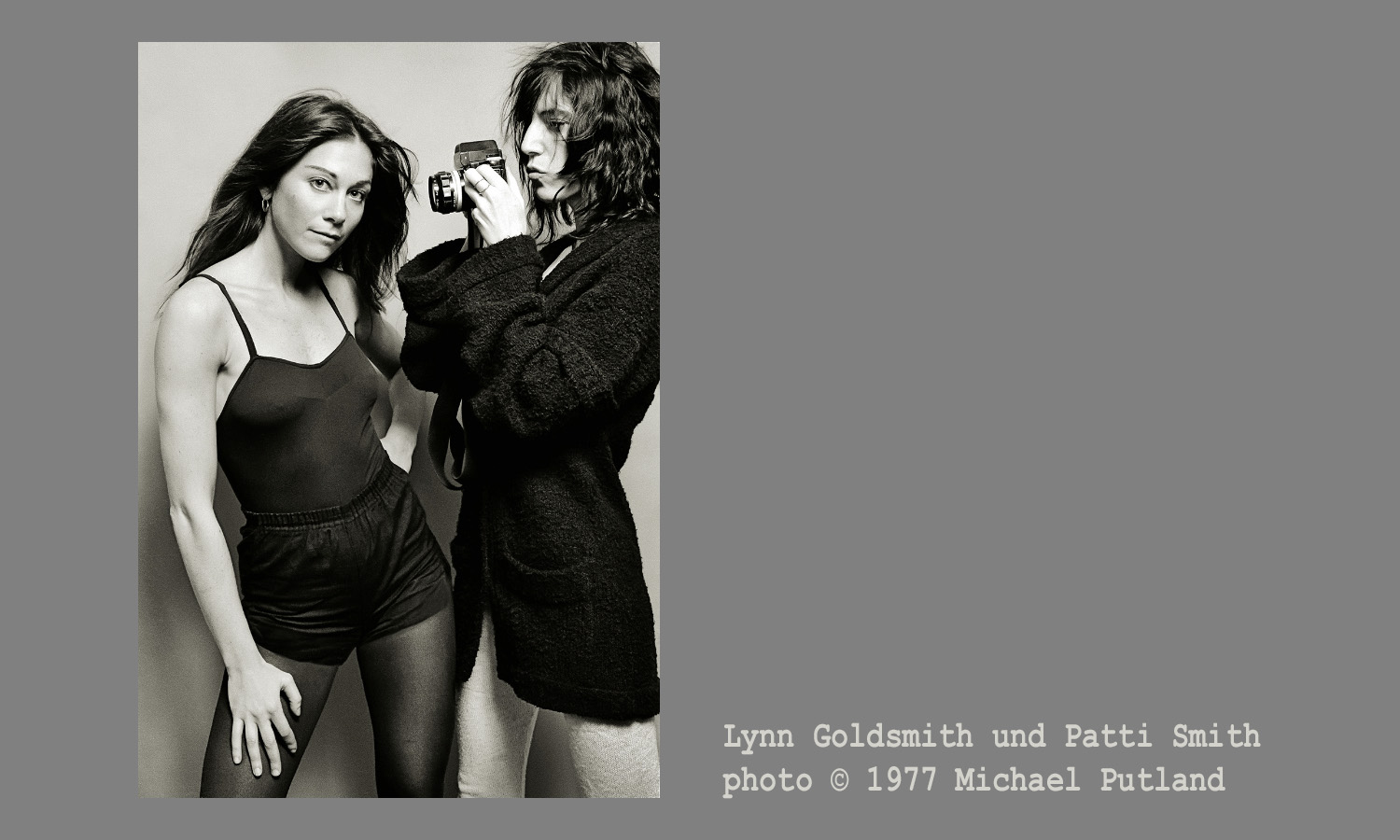 Die Fotografin: Lynn Goldsmith hat über fünf Jahrzehnte amerikanischer Kultur dokumentiert. Sie fotografierte Popstars, Persönlichkeiten aus der Unterhaltungsbranche, Sportlegenden, Filmregisseure sowie Autoren. Sie arbeitete für Magazine wie TIME, LIFE, Vanity Fair, Rolling Stone, Interview, The New Yorker, Paris Match, Vogue Italia und hat 13 Bände mit ihren Fotografien veröffentlicht. Ihre Arbeiten befinden sich in den Sammlungen der Smithsonian National Portrait Gallery, des Museum of Modern Art, des Chicago Museum of Contemporary Photography sowie der Rock and Roll Hall of Fame. Goldsmith, die zahlreiche Auszeichnungen erhielt, darunter den World Press Award in Porträtfotografie und den Lucien Clergue Award, stand mit ihrem Buch New Kids auf der New York Times-Bestsellerliste.