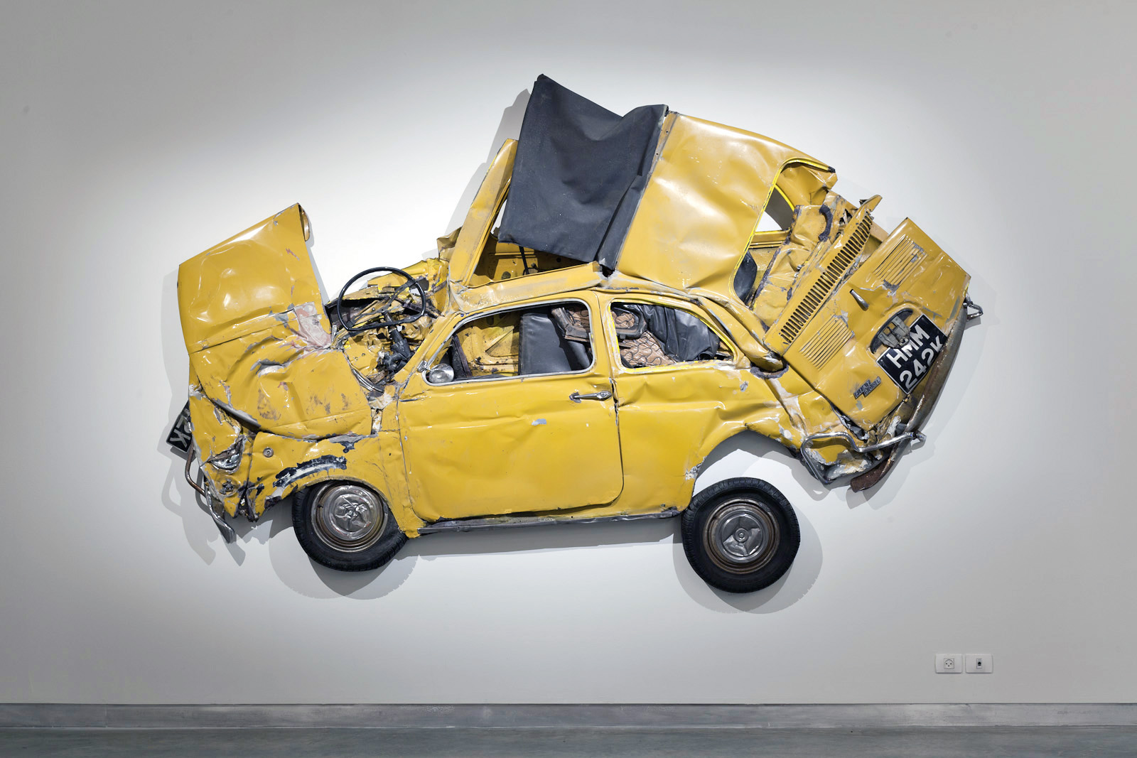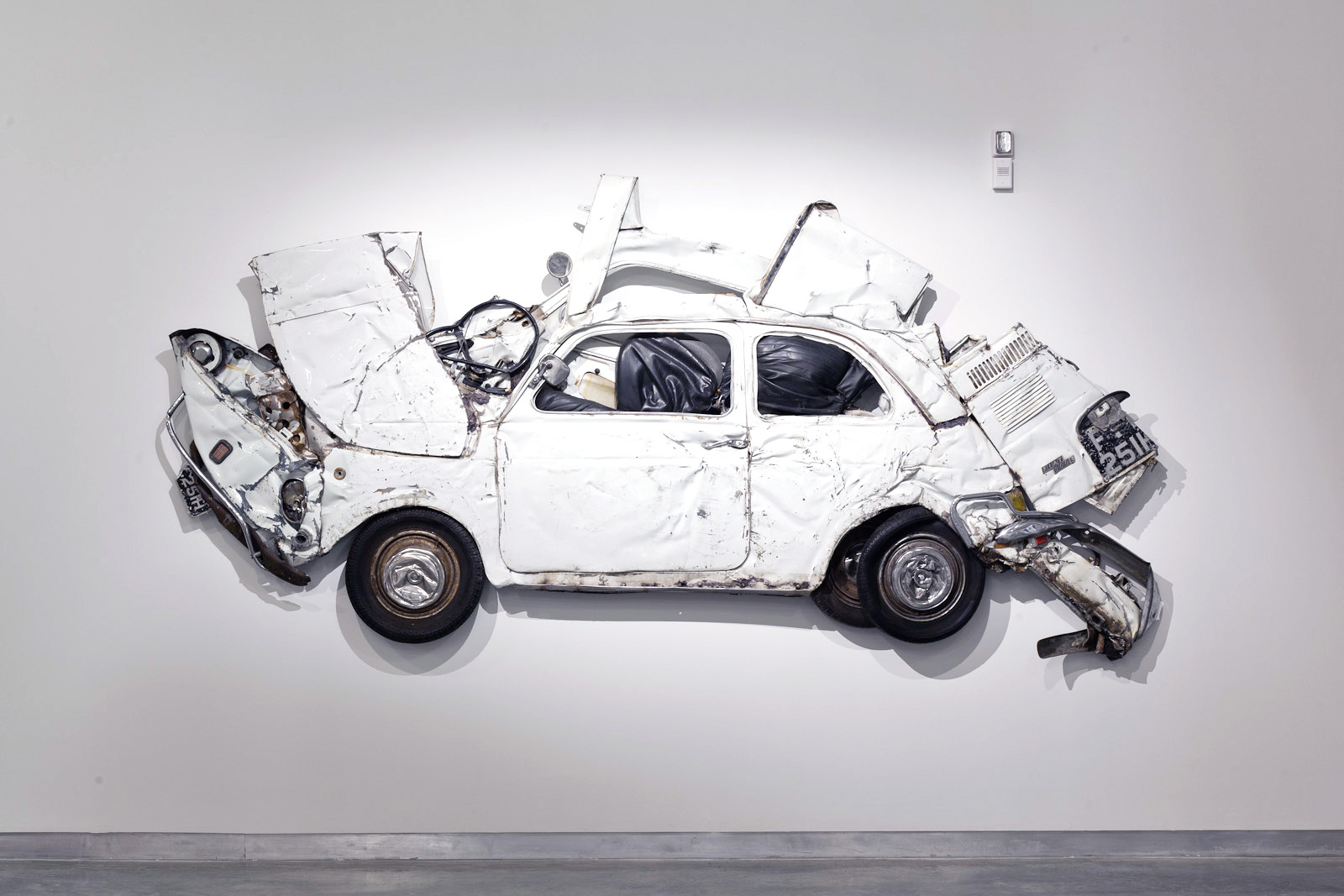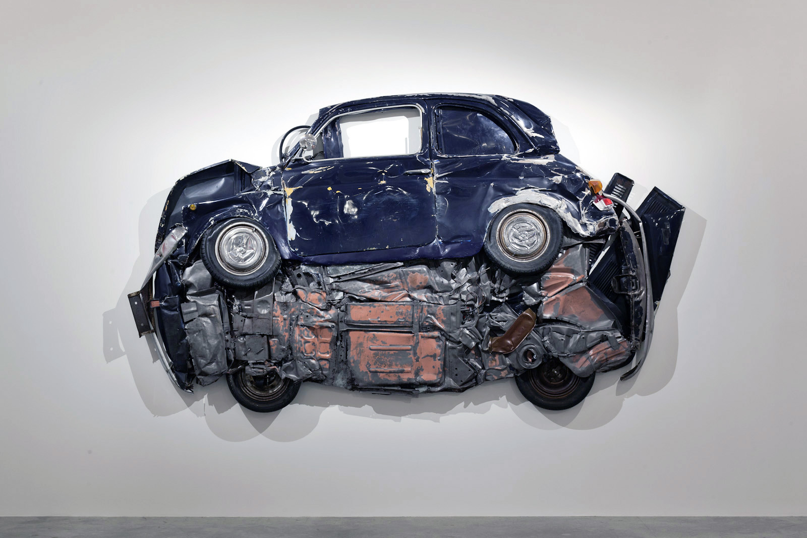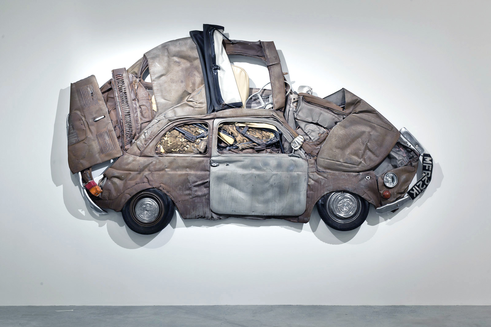 Berühmt wurde Ron Arad durch seine Metall-Objekte, die das Material ‚nutzbar’ machen sollten. Mit diesem Projekt kehrt er das um. Die so gewaltsam ‚konservierten’ Erinnerungen an eines der bekanntesten Autos sollen ein Liebes-Beweis an die Mini-Autos aus Italien sein. Er hat den Cinquecento unsterblich gemacht…..