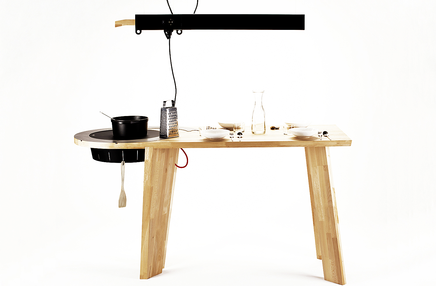 KulturWohnKüche thematisiert den Wandel von Koch- und Esskultur. Das Konzept verschmilzt den Herd mit einer Werkbank, die im Raum aufgestellt werden kann – und so Interaktion fördert. Die Koch/Arbeits/Was auch immer-tun..Werkbank soll der Versuch sein, das starre Bild der Einbauküche abzulösen.