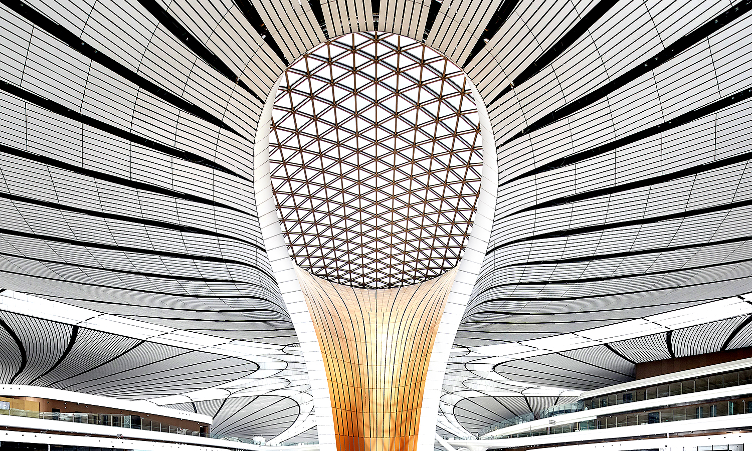 Der Philosophie traditioneller chinesischer Architektur folgend haben ZAHA HADID ARCHITECTS fließende Verbindungen zwischen dem Zentrum und den angeschlossenen Zonen hergestellt. Natürliches Licht begleitet die Passagiere in allen relevanten Bereichen, die Skylights helfen bei der Orientierung. Interessante Bilder vom Projekt Beijing Daxing International Airport, momentan für 45 Millionen Passagiere pro Jahr geplant. Auf längere Sicht zu erweitern auf 100 Millionen und 4 Millionen Tonnen Fracht pro Jahr. Die Bilder hat ZAHA HADID ARCHITECTS zur Verfügung gestellt, fotografiert von Hufton+Crow.