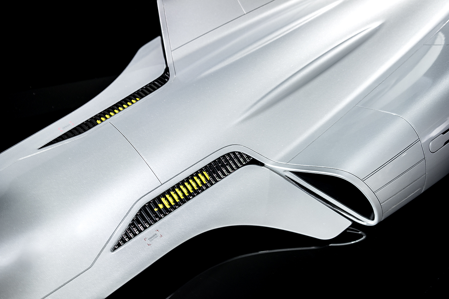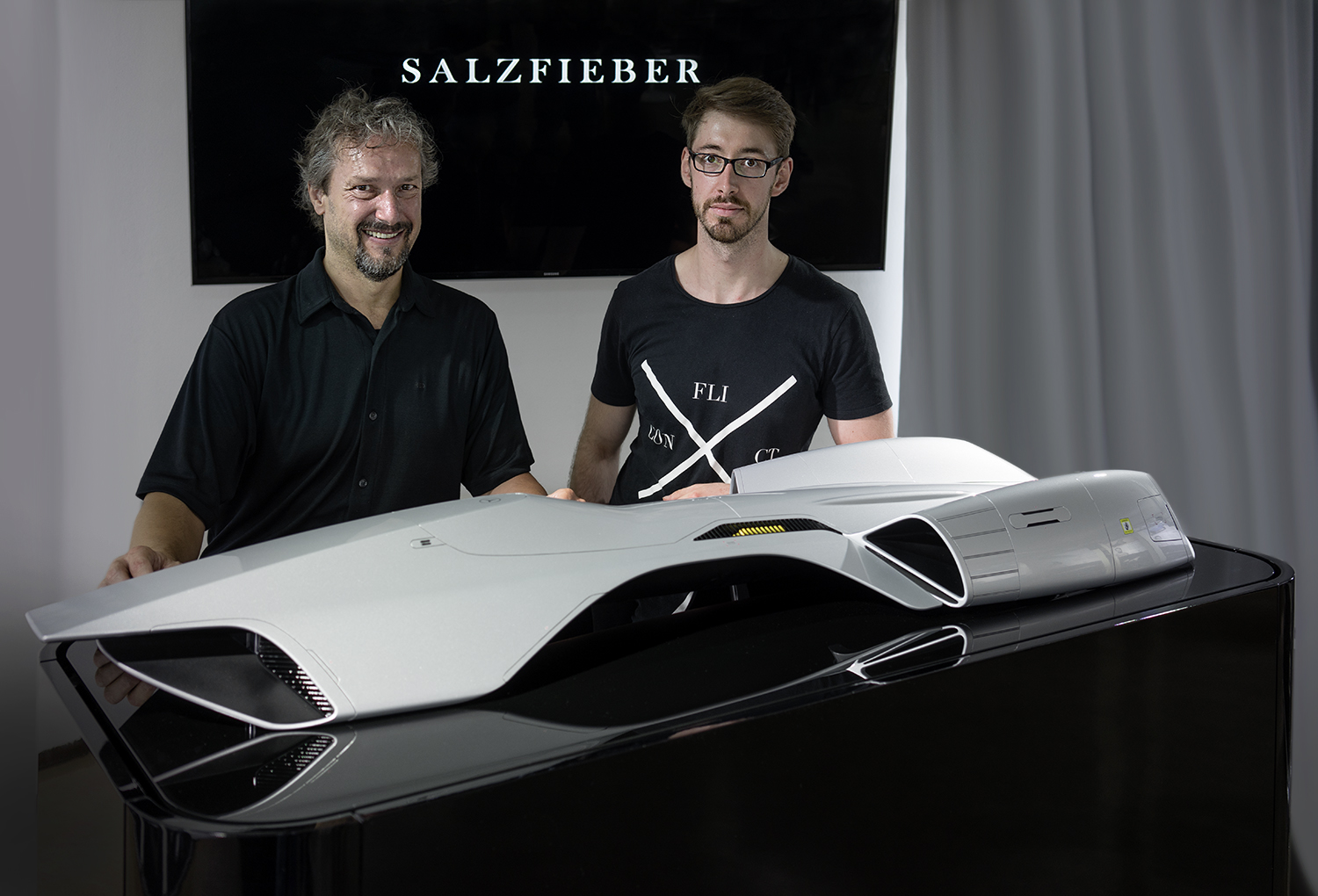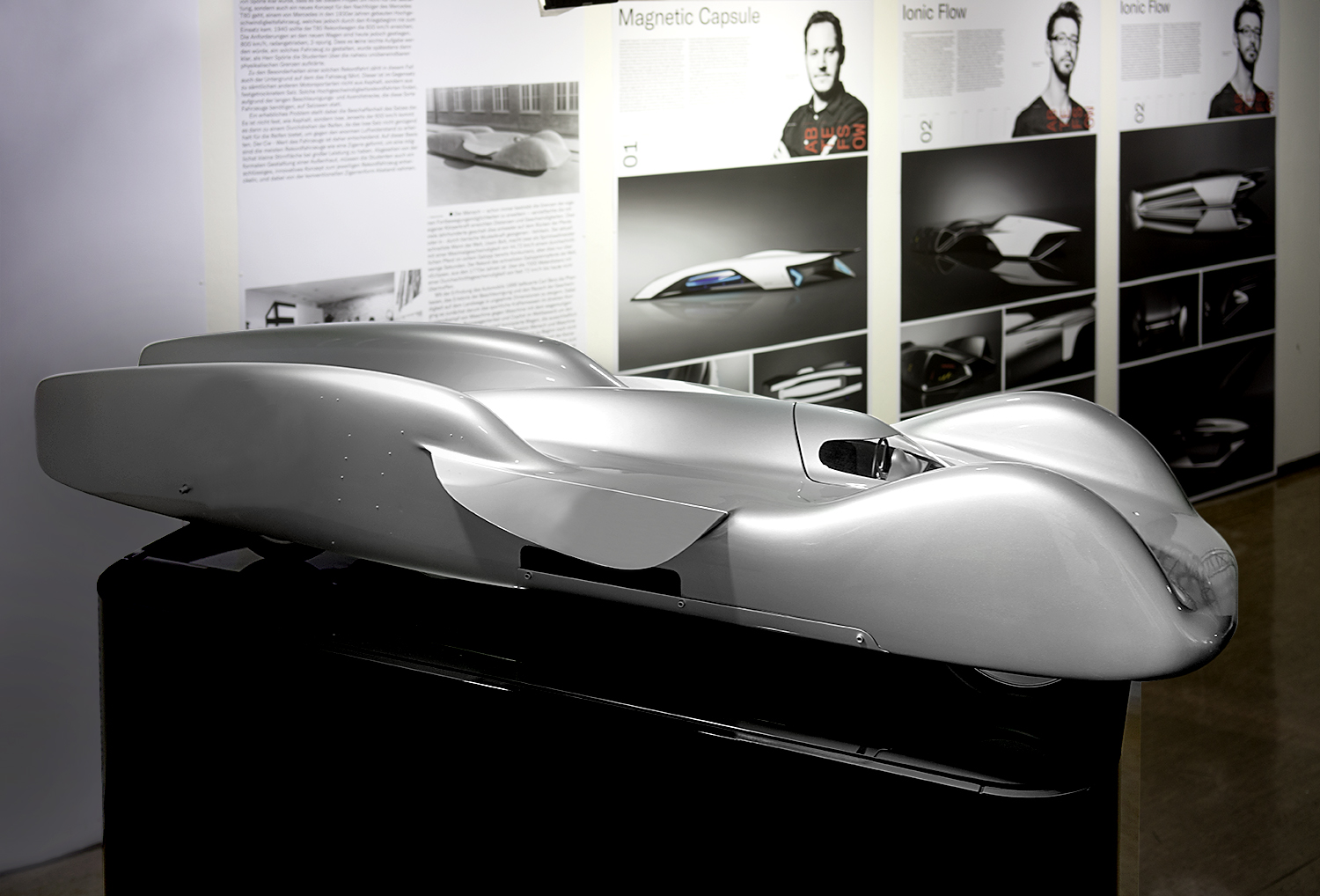 Es war schon immer spannend und aufregend bei den Jahres-Ausstellungen des Fachbereichs Transportation-Design an der University of Applied Sciences in München. Diesmal allerdings, da war es recht nah mit dem ‚zur Salzsäule erstarren’ – aus purer Bewunderung und Überraschung eines Projekts, dessen Exponate zwar auf den ersten Blick so wirken, als wären sie für die übernächste Folge einer Weltraum-Serie gedacht. Die sich dann aber als ganz reale Entwürfe für ein Projekt herausstellen, das gute Chancen auf Verwirklichung hat. Professor Dr.Othmar Wickenheiser, Professor für Transportation Design an vorgenannter Universität, hat es sich zum Prinzip gemacht, seine Studenten anhand konkreter Projekte auszubilden. Damit will er nicht das Denken in Formen limitieren. Sein Ziel ist, die jungen Designer auf ihren zukünftigen Weg mit einem komplexen ‚Setup’ so vorzubereiten, dass sie ihren Beruf mit Passion und Erfolg ausüben können. Aus dem Traum von diesem Beruf soll der Traumberuf werden. Und für mehr als 90% der bei Prof. Dr. Wickenheiser Studierenden wird das unmittelbar nach ihrem Abschluss Realität. Was hat das nun mit der Salzsäule bzw. dem Salzsee zu tun? Mercedes Benz gab den jungen Designen die Aufgabe, die legendären Speed-Contests auf dem Salzsee in Bonneville in die Zukunft zu projizieren. Als formaler und ideeller Anhaltpunkt das Modell T80, das vor dem Krieg für einen Rekordversuch konzipiert worden war, aber nie zum Einsatz kam. Fulminant, was die Studenten daraus gemacht haben! Die Konzepte sind so spannend, dass wir sie der Reihe nach vorstellen werden. Aktuell steht der Geschwindigkeitsweltrekord für Elektrofahrzeuge übrigens bei 576 km/h – und der Gedanke ist naheliegend, dass Mercedes das überbieten will…